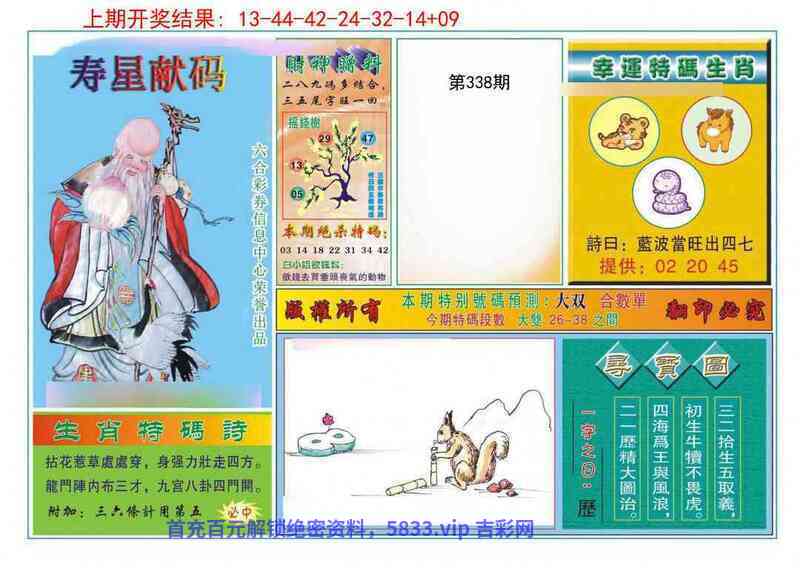 | 334期:七肖【虎鸡蛇猪猴羊鼠】开:猴46准 |